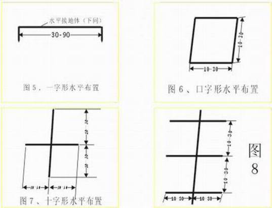 此法適用于地形狹窄而又不便深挖的的條件差的情況。水平與垂直接地坑的均可適當(dāng)比規(guī)定值淺些。