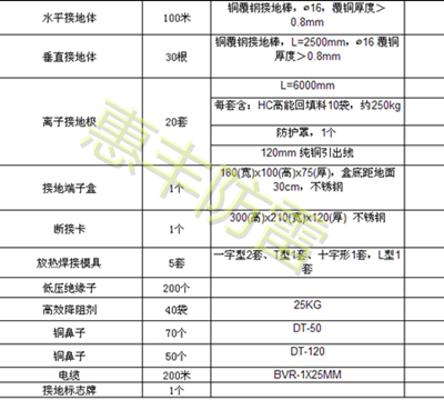 離子接地 其他材料訂購標(biāo)準(zhǔn)說明